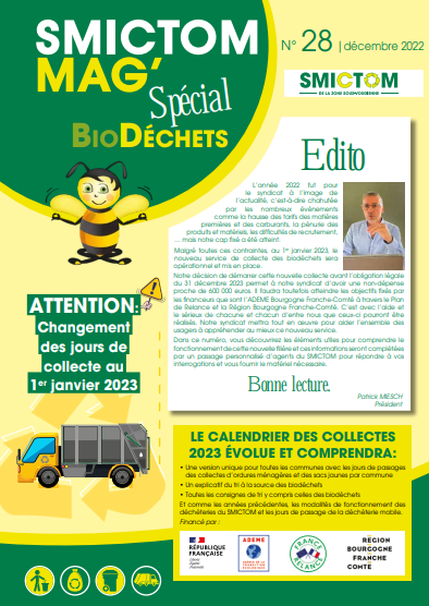 Smictom Smictom Mag 28 décembre 2022 Le SMICTOM Mag' n°28 de décembre2022 est disponible, pour le consulter cliquez ici ou connectez vous sur le site internet.. En savoir plus