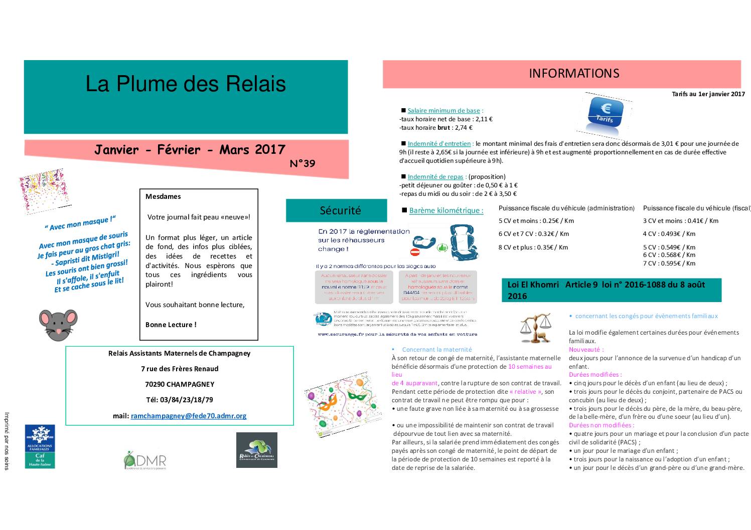 La plume des Relais – 1er trimestre 2017 n°40