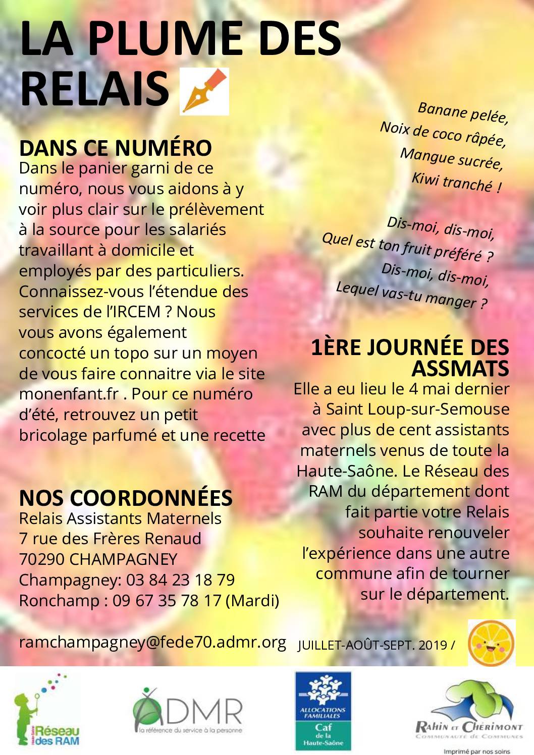 Assistants maternels, tenez-vous informés via le journal trimestriel « La Plume des Relais » qui vous est envoyé par email uniquement depuis janvier 2018. Nous vous invitons donc à nous transmettre votre adresse email afin que nous puissions vous ajouter à notre liste de diffusion.